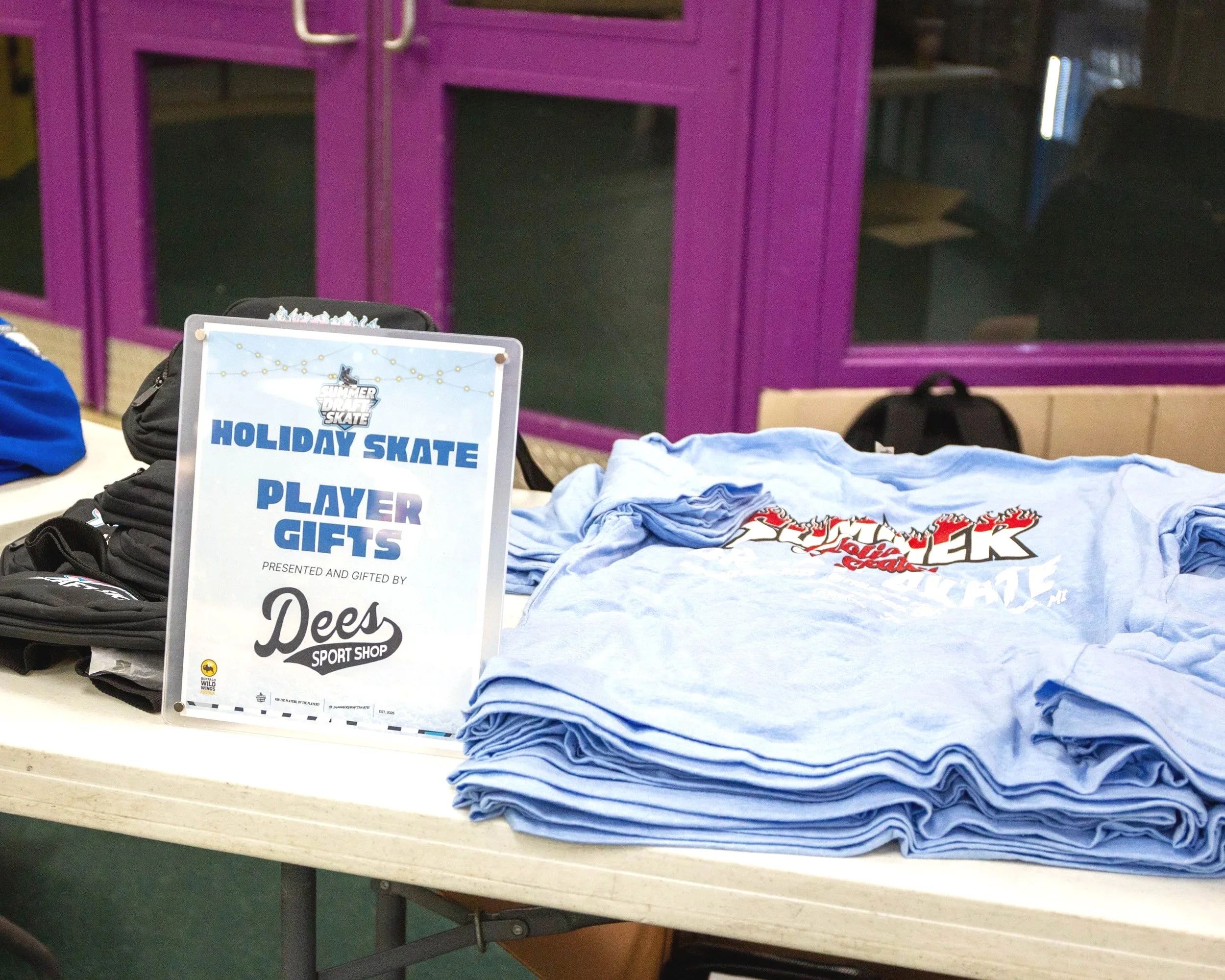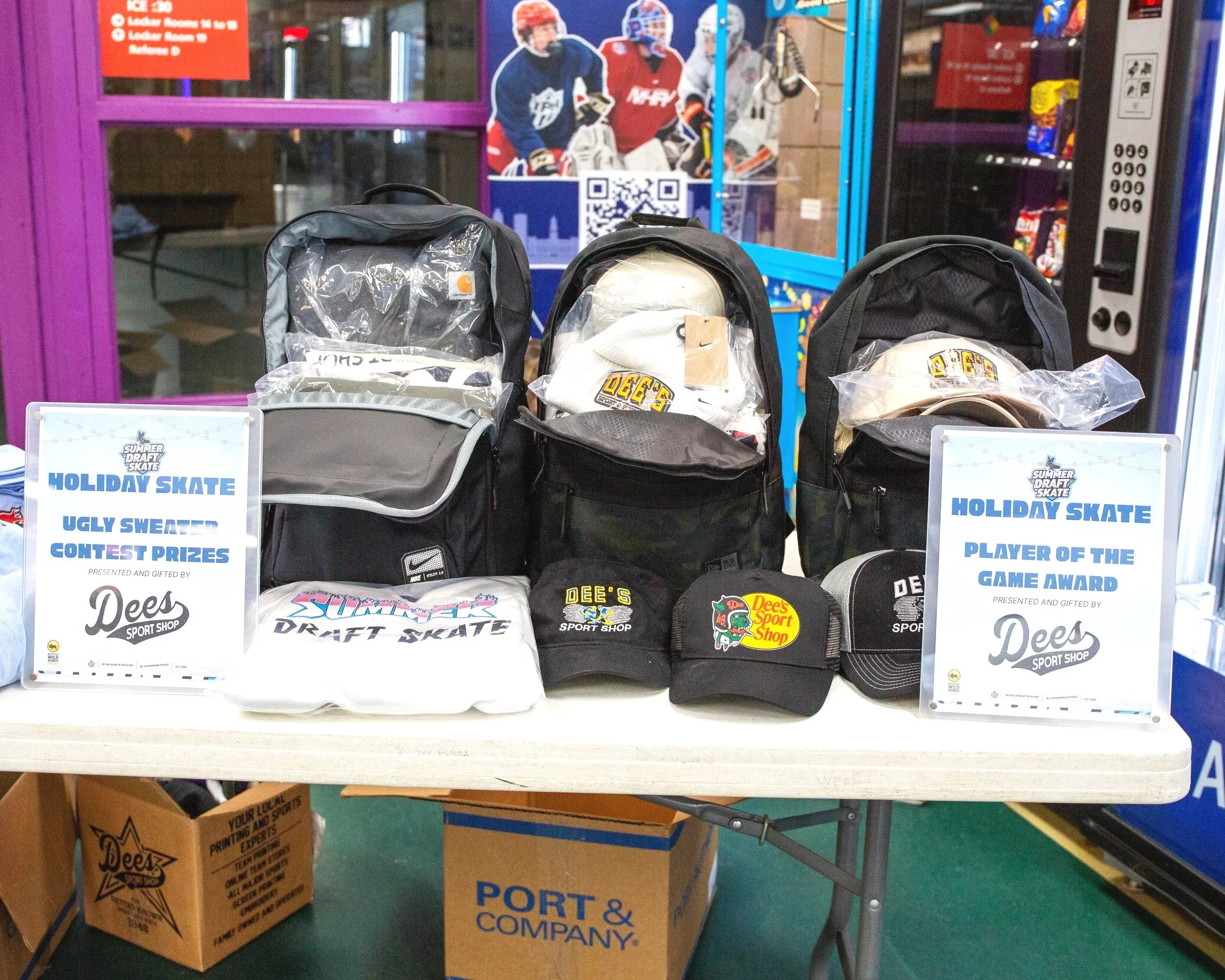 The Summer Draft Skate - Holiday Skate featured an Ugly Sweater Contest presented by Dee’s Sport Shop with first place, second place, and third place winners awarded custom gift packages featuring backpacks filled with merchandise such as hats, shirts, and hoodies gifted by Dee’s Sport Shop!